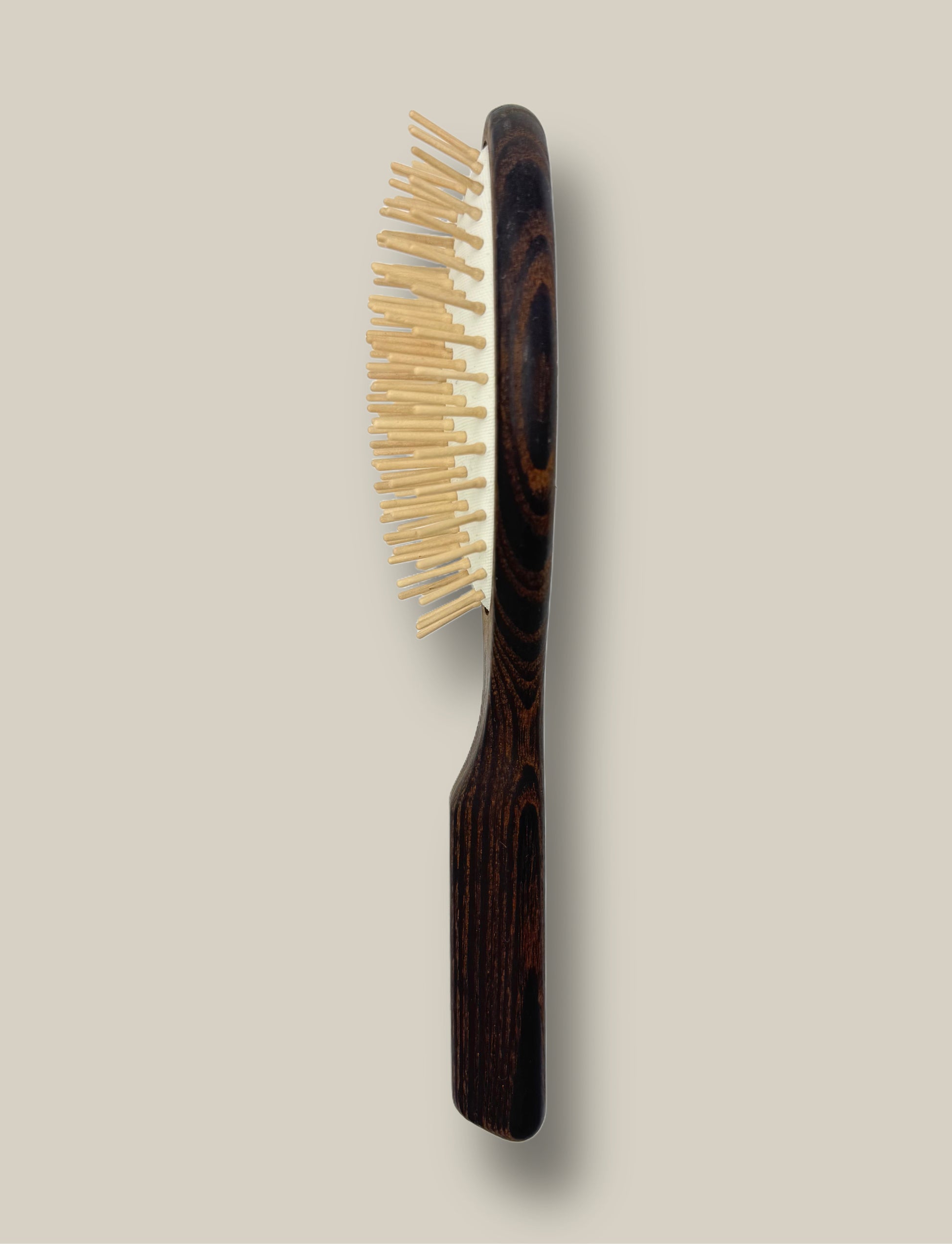 Die abgerundeten Holzstifte massieren sanft die Kopfhaut, regen die Durchblutung an und entspannen spürbar. Sie entwirrt mühelos – ohne Ziepen – und bringt dich zurück in Verbindung mit dir selbst.